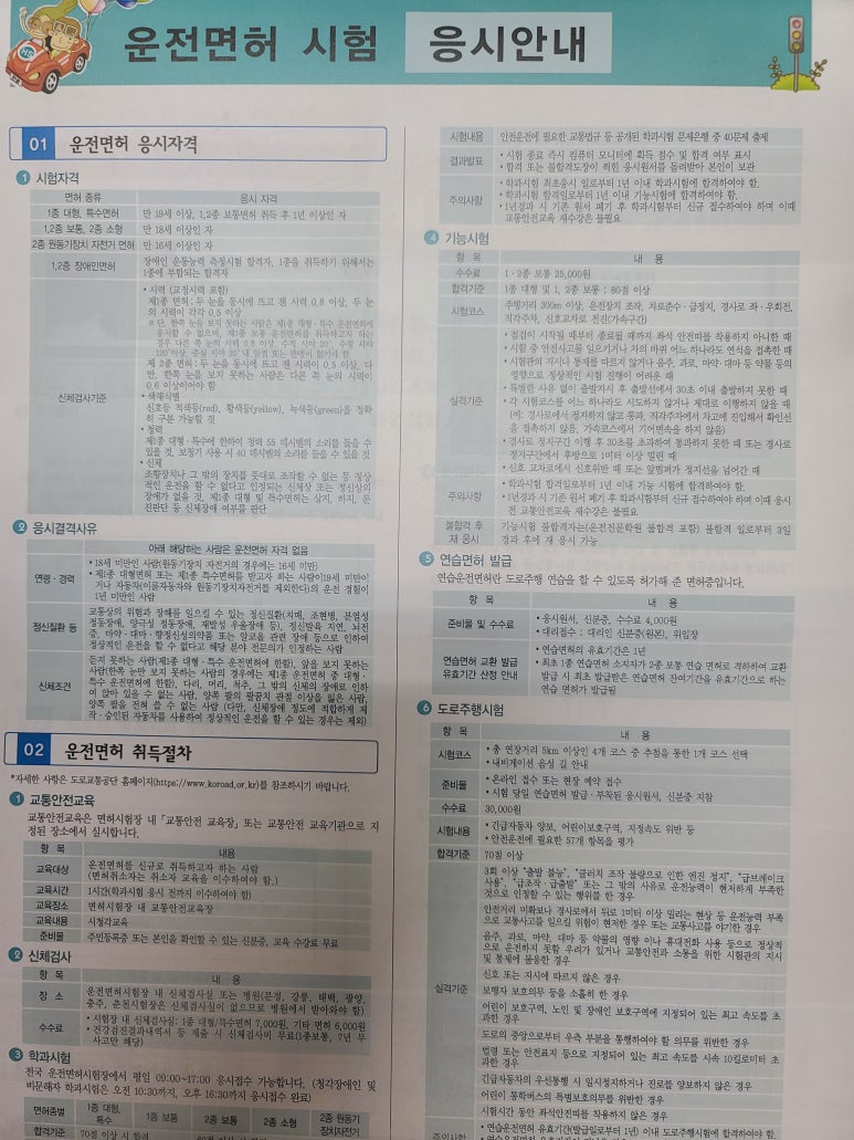 운전면허 시험 응시에 대한 안내내용도 나와있습니다.