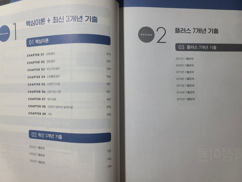 목차를 펴봤습니다. 앞권에는 각 과목의 핵심이론과 2022~2024년의 최신 기출문제가 수록되어 있습니다.