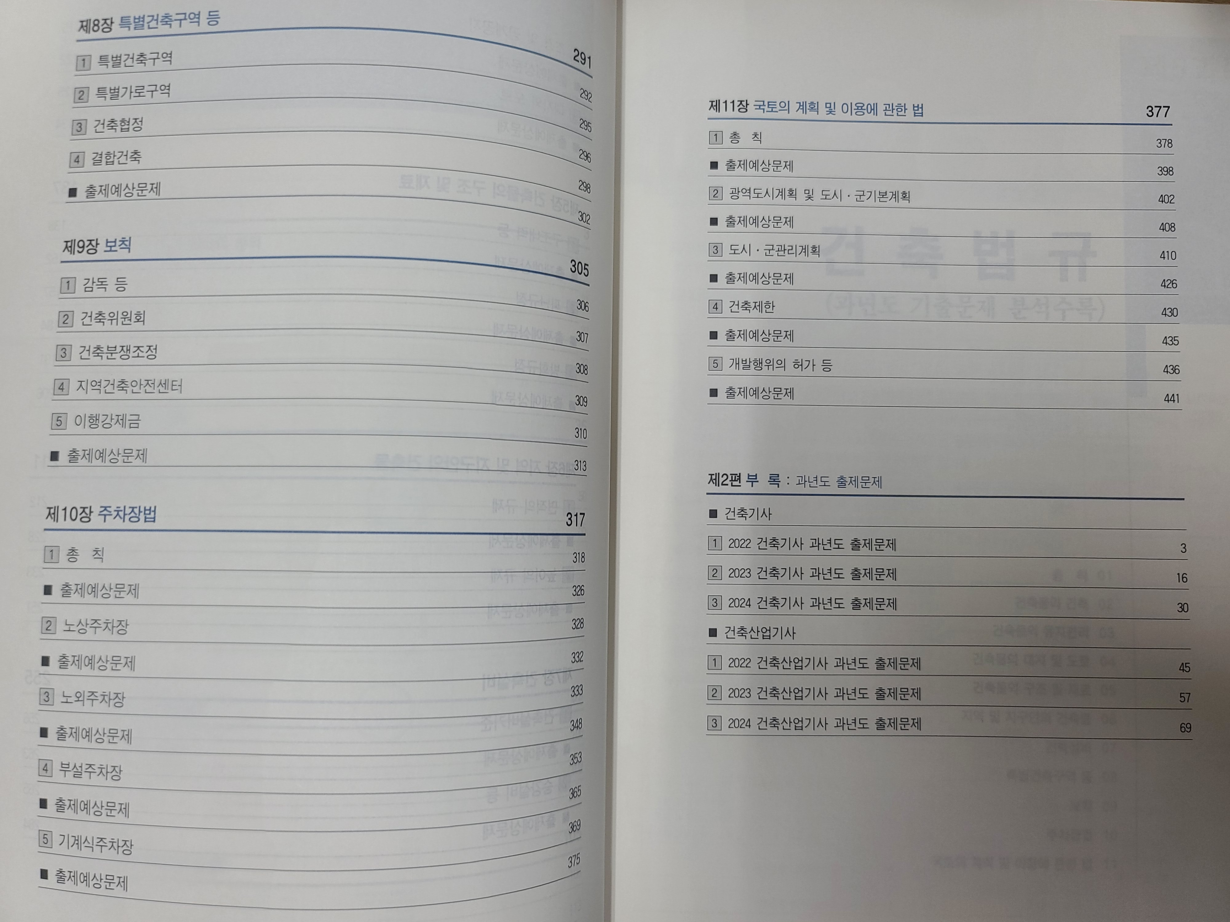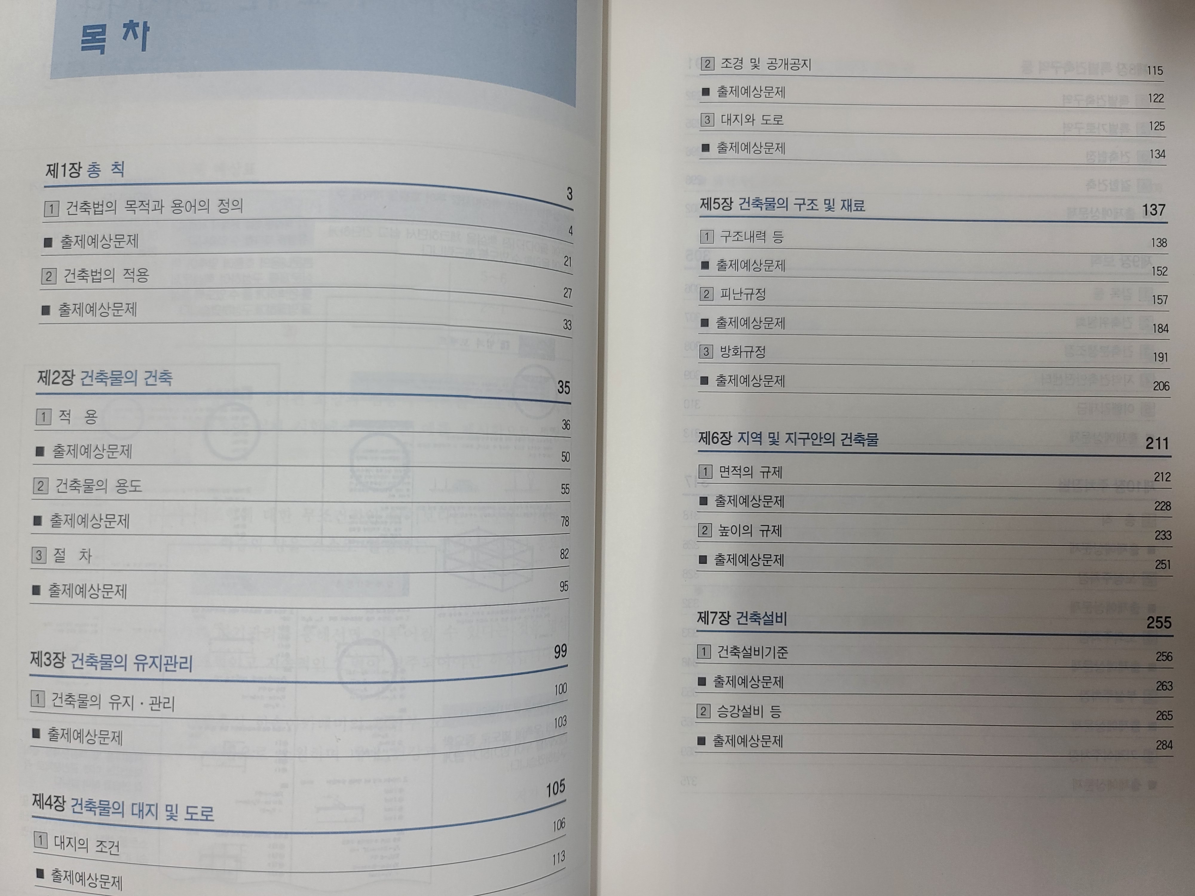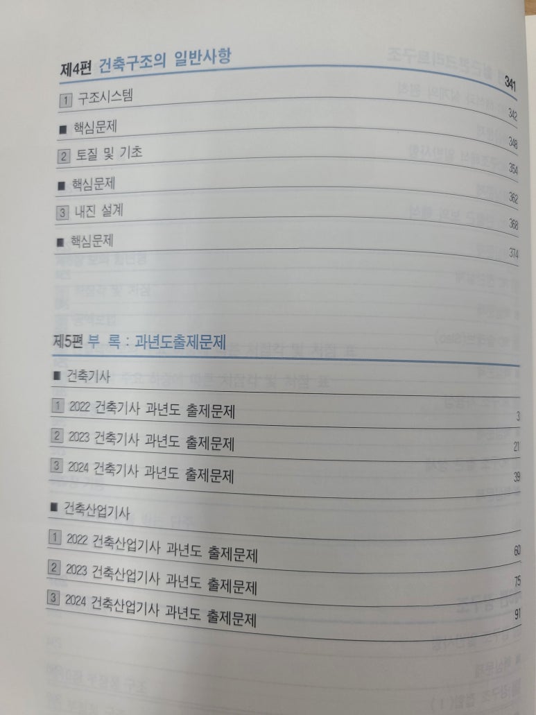 목차를 살펴보니 건축시공의 챕터가 다양하게 수록되어 있습니다.
