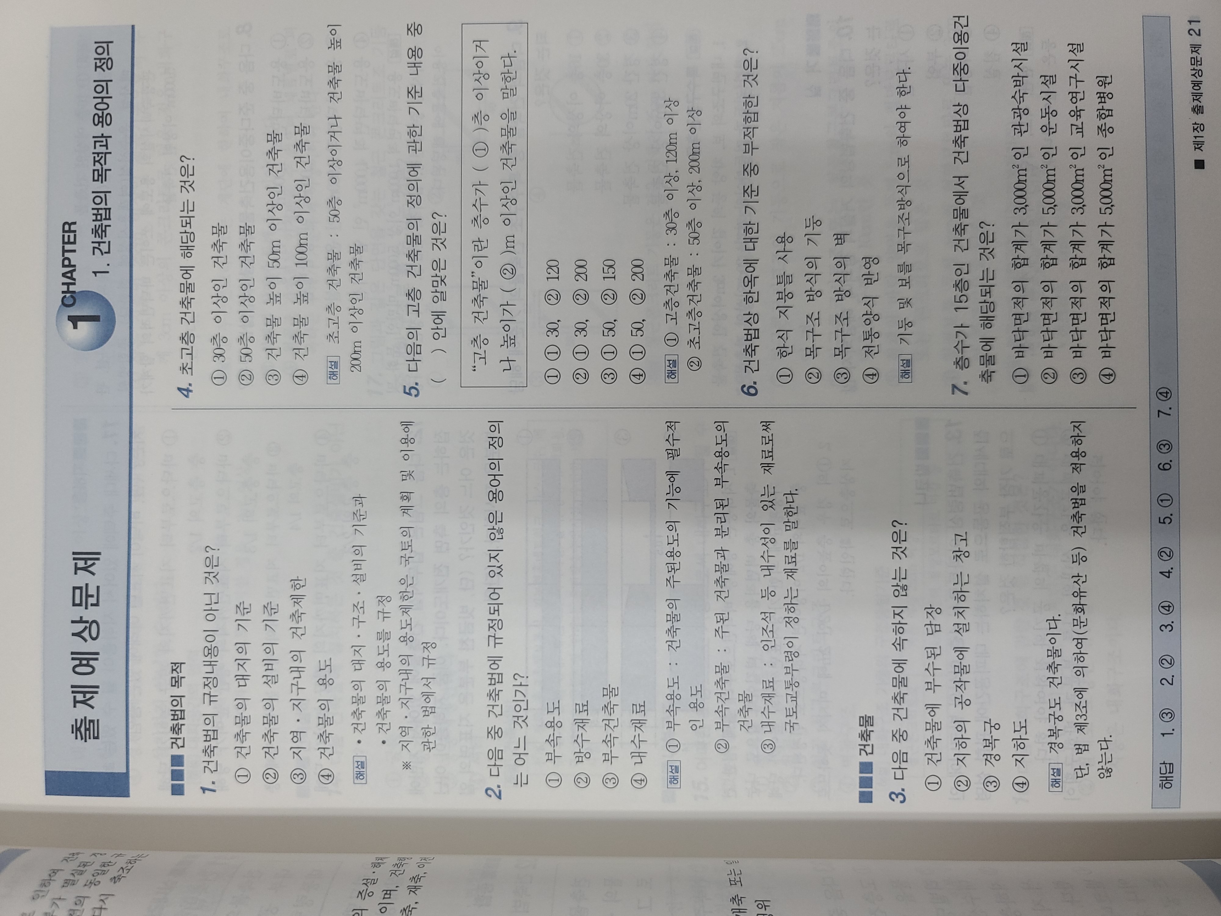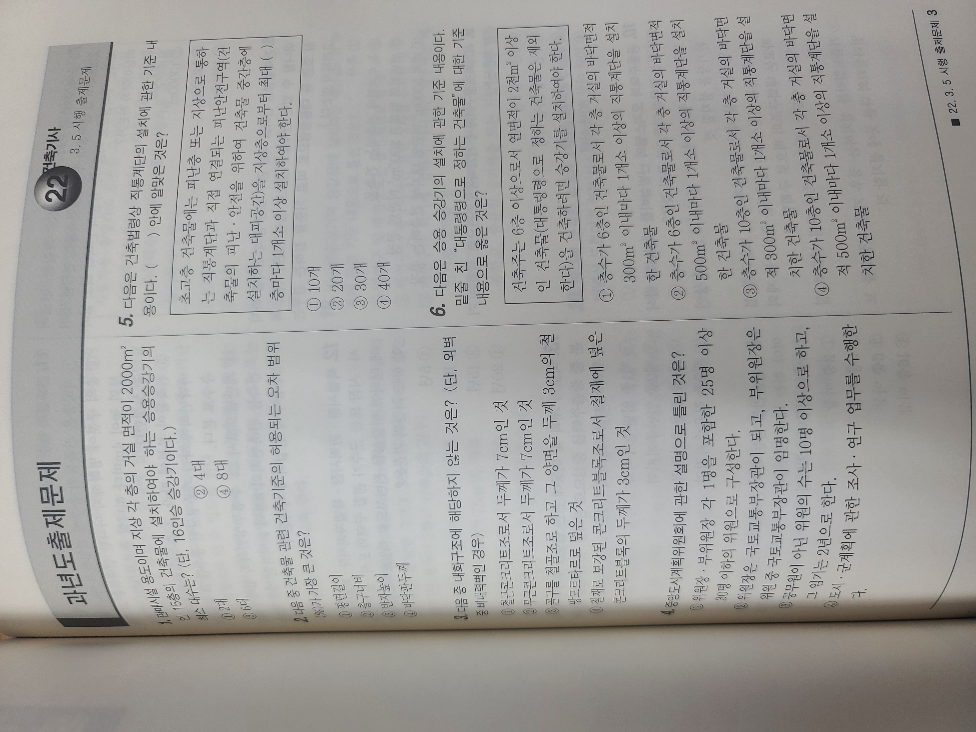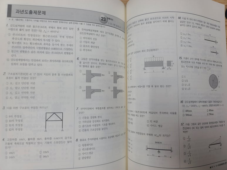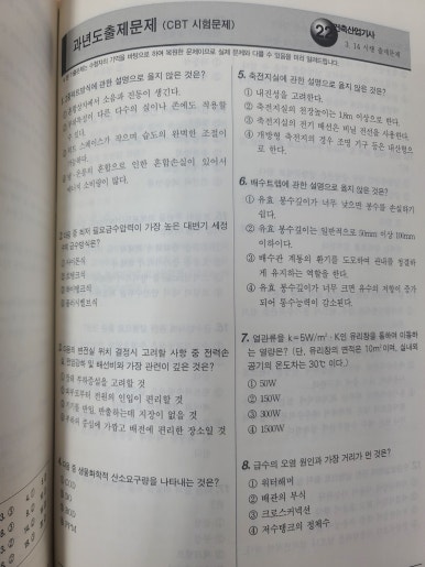 과년도출제문제부분에는 건축기사와 건축산업기사의 과년도출제문제가 수록되어 있고, CBT대비 실전테스트 문제도 같이 수록되어 있습니다.