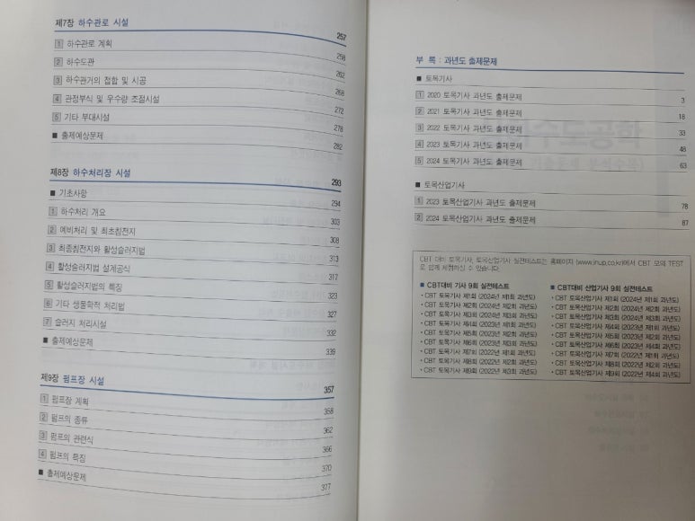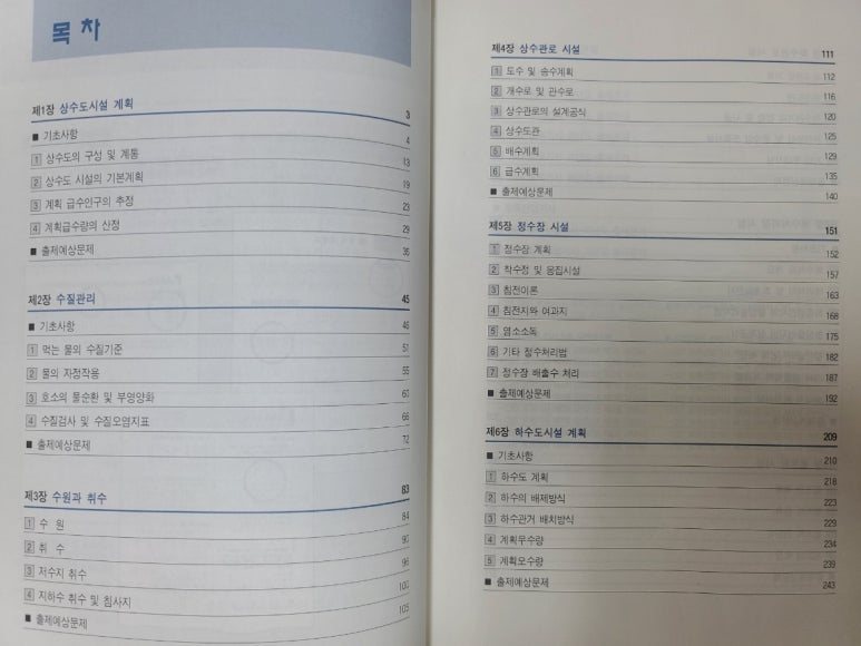 목차를 살펴보니 상하수도공학의 챕터가 다양하게 수록되어 있습니다.