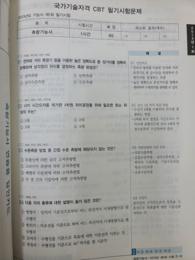작업형시험을 준비할 수 있습니다.이 책을 가지고 필기와 실기를 차근차근 준비해 나간다면 측량기능사 시험에 합격의 영광이 있을거라고 생각합니다.