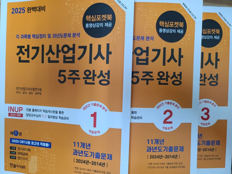 한솔아카데미 수험서는 수험생들이 공부하기 쉽게 잘 정리되어 있어서 수험생들에게 많은 도움이 되는거 같습니다. 전기산업기사 5주완성 필기 교재는 이론과 11개년의 기출문제를 통해서 시험에 완벽하게 준비할 수 있는 교재같습니다. 한솔아카데미 교재를 가지고 동영상강의를 무료강의로 수강하면서 공부를 해나간다면 합격의 영광이 있을거라고 생각합니다.
