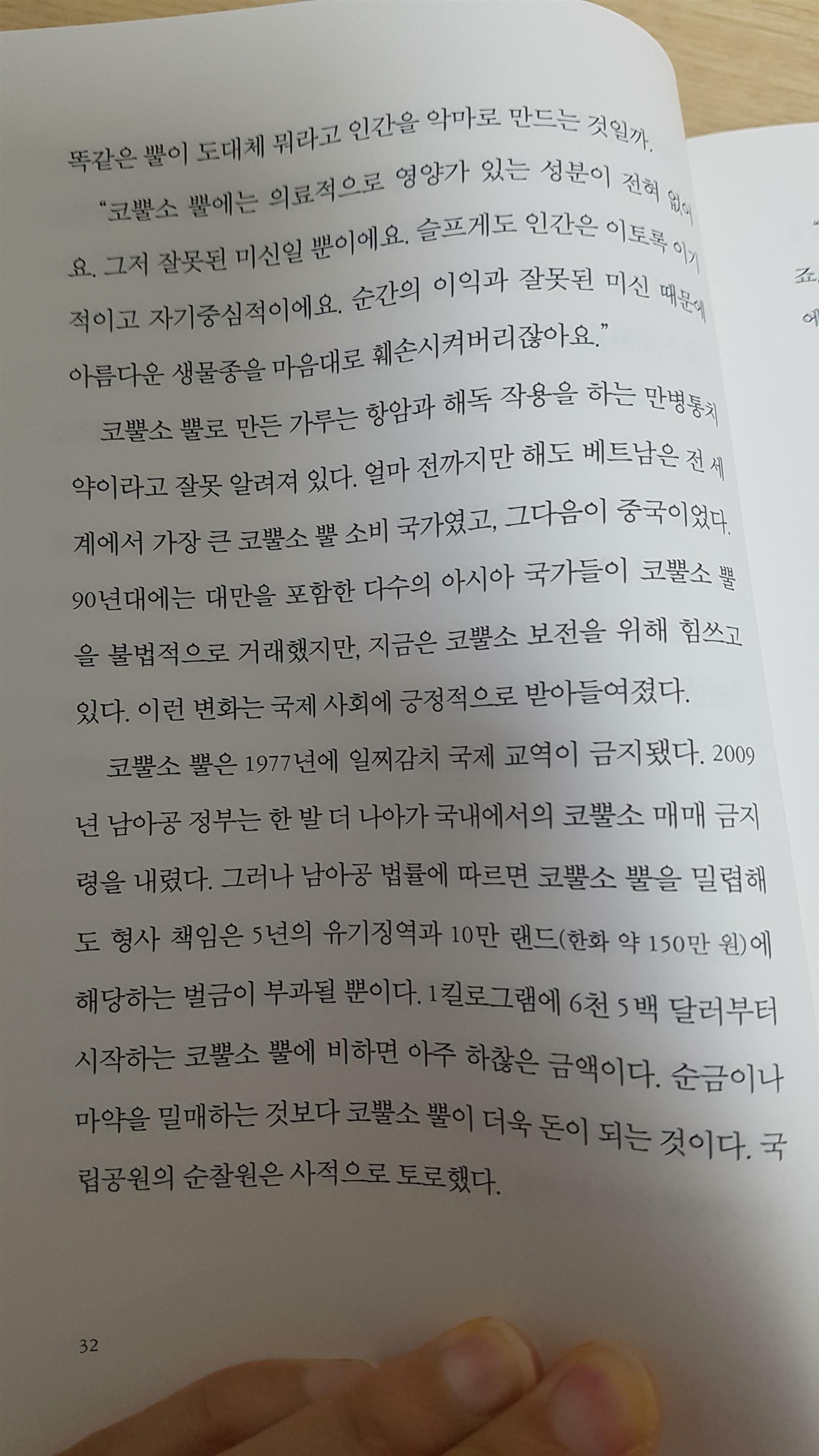 너무 슬펐던 것은 아기 코뿔소에 눈에 상처가 나서 실명될위기였는데 그 이유가 엄마 코뿔소를 죽이기.위한 사람의 도끼질에 다쳐서이다. 너무 어려서 엄마가까이 있다가...ㅠ
