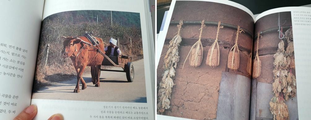 초막, 소달구지, 떡메, 베짜기, 무명과 명주, 죽물, 한지, 쌀엿, 과자,