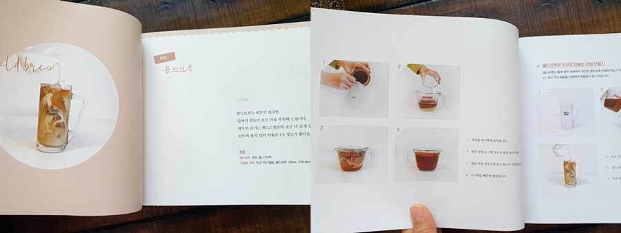 간단하면서 명확한 사진과 설명, 'TIP'도 있으니 음료 만들 때 따라 하면 됩니다.