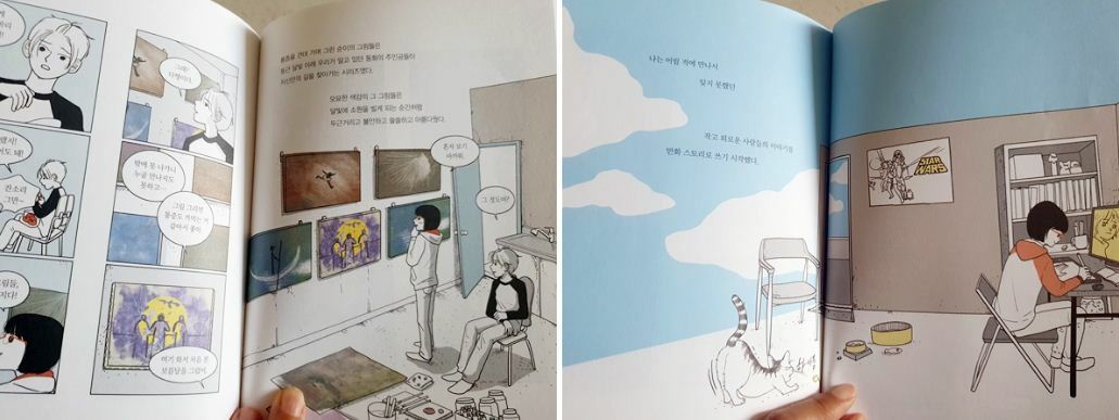 다른 곳의 옥탑방을 얻어 자신의 이야기를 만화로 쓰기 시작합니다.