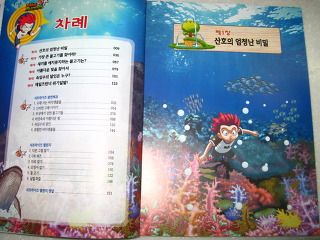 퀴즈쇼에 광고가 안들어와서 잠정적으로 프로그램을 중단하기로 했는데요 그때 보물섬에 나오는 해적 실버가 찾아오는데요 어두었던 해적생활을 반성하는 의미로 지금부터 제가 퀴즈쇼를 후원하기로 했다고 하는데요 두가지 조건을 내세우는데 첫번째는 바다 생물에 관한것, 문제 출제와 판정은 실버가 하기로 했는데요 첫번째 문제는 바다에서 가장오래 사는 동물을 찾는게 문제였는데 사로잡은 생물을 축소시켜 집어넣을수 있는 스몰 어항과 포획카드, 물속을 자유롭게 돌아다닐수 있고 바다생물과 대화할수 있는 능력이 생기는 아쿠아포션을 받게 되는데요 뜻밖에 산호가 동물이라는 사실을 알게 되는데 무척추 동물중하나네요 두번째 문제는 가장 큰 물고기를 찾는데 고래가 포유류하는사실을 미처 못한부분도 책을 읽다보면 알게 되는데요 세번째는 새끼를 가장 애지중지하는 물고기는 네번째는 아름다운 빛을 찾아서 다섯번째는 속임수의 달인은 누구인지에 대해서도 자세히 나와 있어서 바다생물에 대해서 잘 알수 있는데요 실버는 여섯개의 특별한 바다생물이 모여야 열리는 전설의 보물함을 열기위해서 테일즈런너팀를 이용했다는 사실도 밝혀지는데요 서프라이즈 완전백과를 통해서 위에서 나온 질문즐에 대한 답을 자세하게 설명을 해주고 있네요 뒷부분에 보면 다른그림찾기 오징어접기 , 낱말 퍼즐등이 나와서 앞에서 봤던 내용들을 다시 반복하면서 기억하게 도와주어서 너무 좋아요 그리고 편지지도 있어서 아이들이 친구들에게 편지지도 있어서 친구들에게 편지를 쓸수 있게 해주네요 저도 이책을 읽으면서 문제를 같이 풀어봤는데 두번째 문제에서 바다에서 가장 큰 동물이 뭔지 물어봤을때 저도 고래라고 생각했었는데 고래가 포유류이기 때문에 고래상어가 정답이라는 이야기와 산호가 무척추동물이라는 사실도 알게 되면서 놀랐네요 이책을 보면서 아이들에게 점점 재미도 있으면서 흥미롭고 새로운것들을 많이 알게 해주는것 같아서 아이들이나 엄마들이 이책에 빠져드는지 알게되었네요 저도 아이도 이책을 너무 재미있게 읽었거든요 주변에도 이책을 한번 읽어보라고 이야기해주고 싶네요