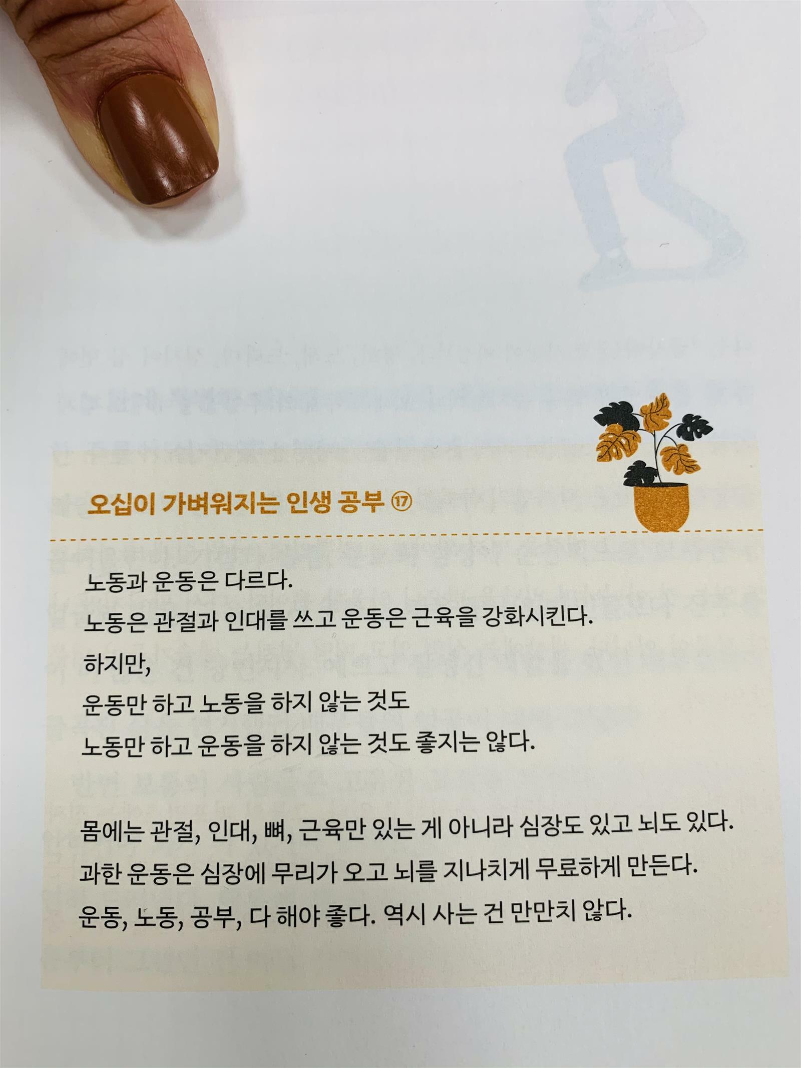 그러니 책처럼 삐그덕거리는 몸은 갱년기, 의문투성이 머리는 사춘기, 마음은 불안한 취준생이 나에게도 맞는 표현이었다.