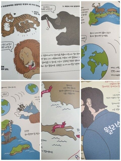 동물이 사는 곳을 가만히 살펴보면 재미있는 사실을 발견할 수 있습니다. 북극곰은 북극에만 살고 남극에는 없습니다. 사슴도 아프리카에서는 찾아볼 수 없습니다. 왜 그럴까요? 저마다 사는 곳이 정해져 있기 때문입니다. 이 사실을 바탕으로 만들어진 분류법이 바로 동물의 세계지도 ‘동물지리구’입니다. 이 책은 동물지리구를 바탕으로 대륙을 6개의 구로 나눠 체계적으로 설명합니다. 세계지도를 중심으로 살펴보기에 어떤 동물이 어떤 지역에 사는지 쉽게 파악할 수 있었습니다. 각 동물에 대한 정보는 게임 캐릭터 카드처럼 한눈에 볼 수 있게 한 페이지로 정리했습니다.