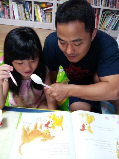 큰 애는 아빠랑 페이지를 번갈아 가며 같이 책을 읽었는데,