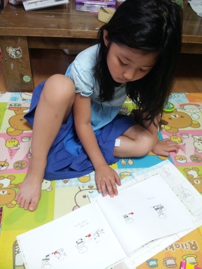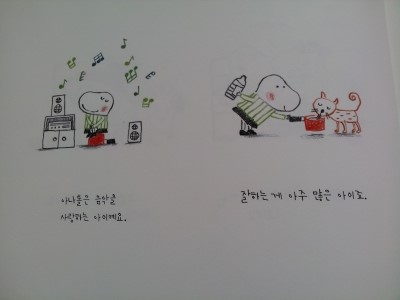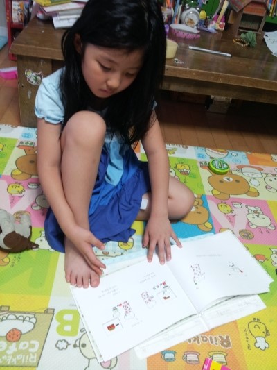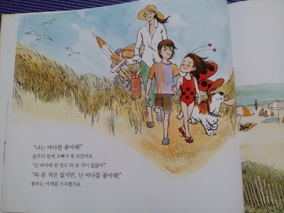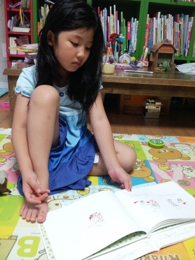 특히 그림도 예쁘고, 또 본문 페이지가 무광이라서.. 잠 자기 전 누워서 아이들에게 책을 읽어줄 때도 눈부심이 없어서 맘에 들었다. 특히나 귀여운 주인공까지~~