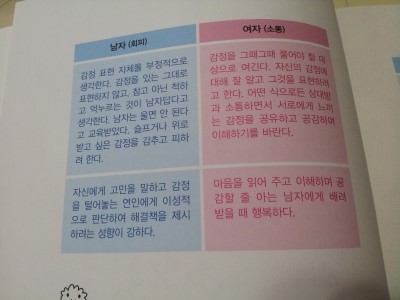 - 남자와 여자는 서로 표현 방식이 다르다는 것을 알고, 상대에 대한 이해심을 키워야 한다.