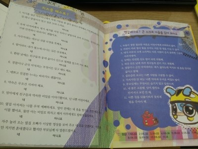 참 본문 마지막에는 <아이돌 따라잡기 프로젝트-예쁜 몸매 만들기>라고 해서 키 크는 스트레칭으로 5가지 동작을 제시해 뒀어요~ 그거 따라해보라고 하니, 그래도 잘 따라하긴 하더라구요!ㅎㅎ 그리고 이어서 다른 그림찾기도 나와 있어서 사실 마지막까지 잼나게 잘 본 거 같아요~ㅎㅎ 금색 싸인펜이라 사진 상에는 잘 보이지 않네요~ㅎㅎ