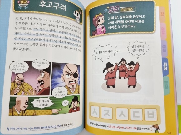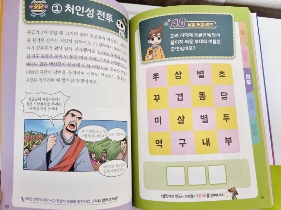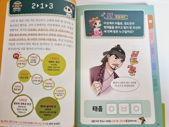 설민석의 한국사 대모험 시리즈를 보면서 퀴즈를 풀어보는 것도 재미있답니다.
