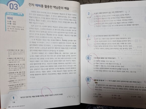 다양한 종류의 지문들과 함께 그속에 있는 주요 어휘 한자어, 한자성어, 관용어까지 색상별로 나뉘어져 있어서 살펴 보기에 좋아요.