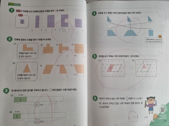 기본 다지기 문제를 통해서 아이가 분수의 개념을 잘 이해하고 있는지 확인 해볼 수 있는데요.