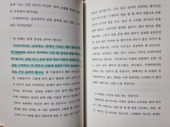 따스한 스피커의 보이스 스피치 코칭책을 읽으면서 스피치의 중요함을 더 느끼게 되더라고요.