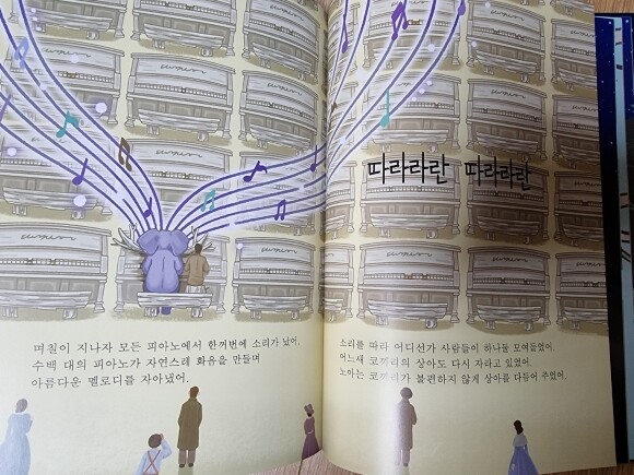 코끼리와 피아노는 표지에서 피아노를 치고 있는 코끼리의 모습이 참 행복해 보이는데요.