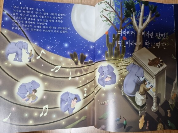 코끼리의 피아노연주는 사람들의 마음을 울리고, 코끼리는 또한번 노아를 위해서 열심히 피아노를 연주한답니다.