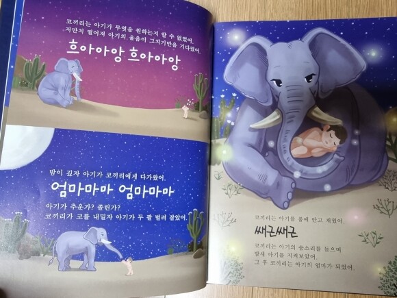 코끼리와 노아가 서로 함께 하면서 다시 같이 공존하게 되는 모습이 참 인상깊었어요.