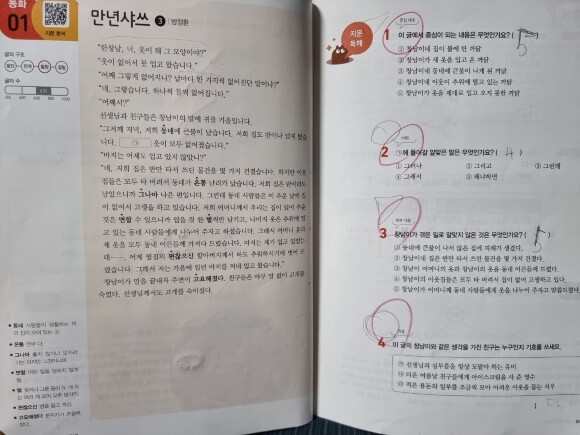 만화를 읽고나면 문제도 풀어보면 좋은데요.