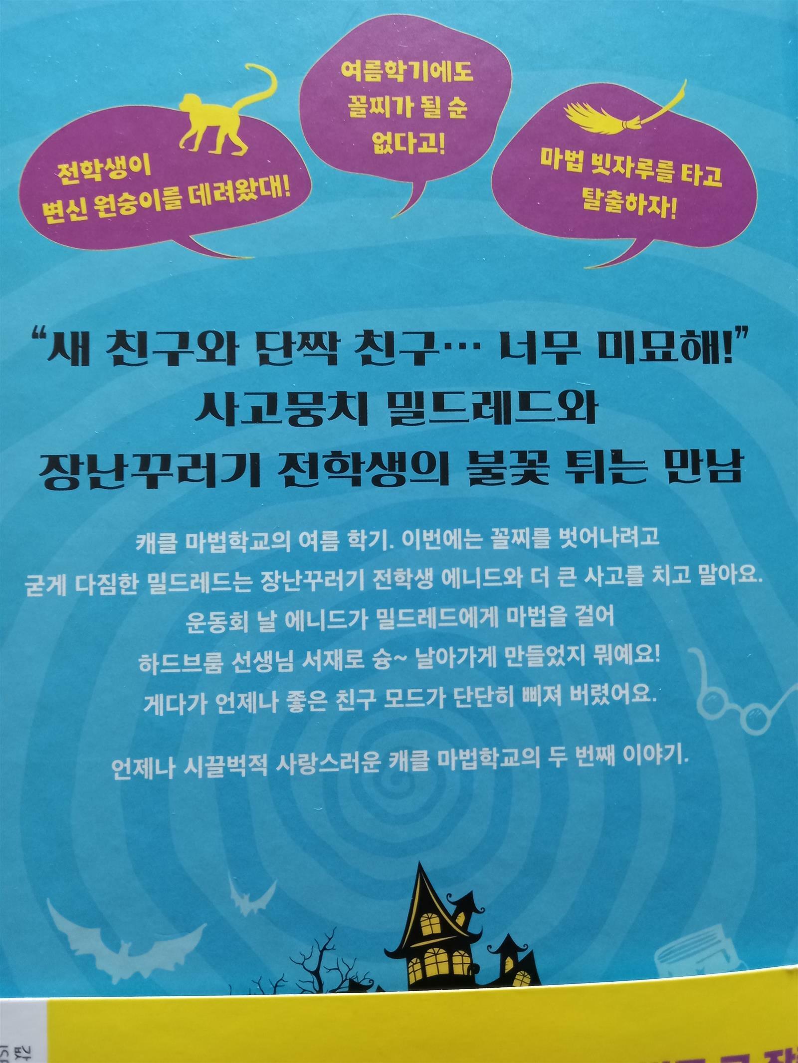 마법학교에 꼴찌이며 말썽꾸러기로 찍힌 밀드레드 잘한다고 하는것이 어떻게 학교내에서는 말썽만 피우는 학생이 되어버렸다. 밀드레드에게는 단짝친구 모드와 고양이 태비가 있다. 선생님에게 골치덩어리인 밀드레드에게 중요한 임무가 주어진다. 에니드가 마법학교에 전학생으로 오게 되고 밀드레드에게 에니드를 도와주라는 임무를 맡기게 된다. 선생님들 입장에서는 문제아처럼 보이는 밀드레드에게 책임감을 주게 하려는 의도로 보인다. 밀드레드는 에니드에게 학교에 잘 적응할 수 있도록ㅈ도와주려는 과정에서 단짝친구인 모드와 사이가 멀어지게 된다 알면 알수록 밀드레드보다 더한 장난꾸러기 에니드 자신의 고양이를 원숭이로 변하게 하거나, 늘 꼴찌를 하거나 망신만 당하는 밀드레드에게 장대높이뛰기에 막대기에 마법을 걸어 선생님 방을 엉망진창으로 만들어놓는 등... 밀드레드가 선생님들에게 실망만 안겨주게 된다. 이쯤되면 밀드레드 참 안되보인다. 자신의 단짝친구 모드가 에셀과 다니게 되고 에니드와 밀드레드가 있는곳에 문을 잠가 난처한 상황을 만들어버리는 에셀 그러나 모드가 기지를 발휘해서 공중에서 멋지게 빗자루에 날면서 밀드레드는 공중묘기를 펼친다 아슬아슬한 묘기였지만 착지도 잘하고 햇살보다 밝은 미소를 가진 마녀들은 진정한 친구가ㅈ된듯하다. 창작동화인 꼴찌마녀밀드레드2 단한번의 잘못으로 마법학교에서 퇴출을 당할 수도 있지만 에니드의 잘못을 말하지 않은 밀드레드 꼴찌면 어떤가요? 착하고 남을 배려하는 밀드레드의 선함이 모두에게 좋은 영향력으로 나비효과처럼 퍼져나가길 바래요 이 책은 리뷰어스클럽에서 도서를 제공받아 작성된 리뷰입니다 #꼴찌마녀밀드레드2#창작동화#질머피#이지북#리뷰어스클럽#서평이벤트