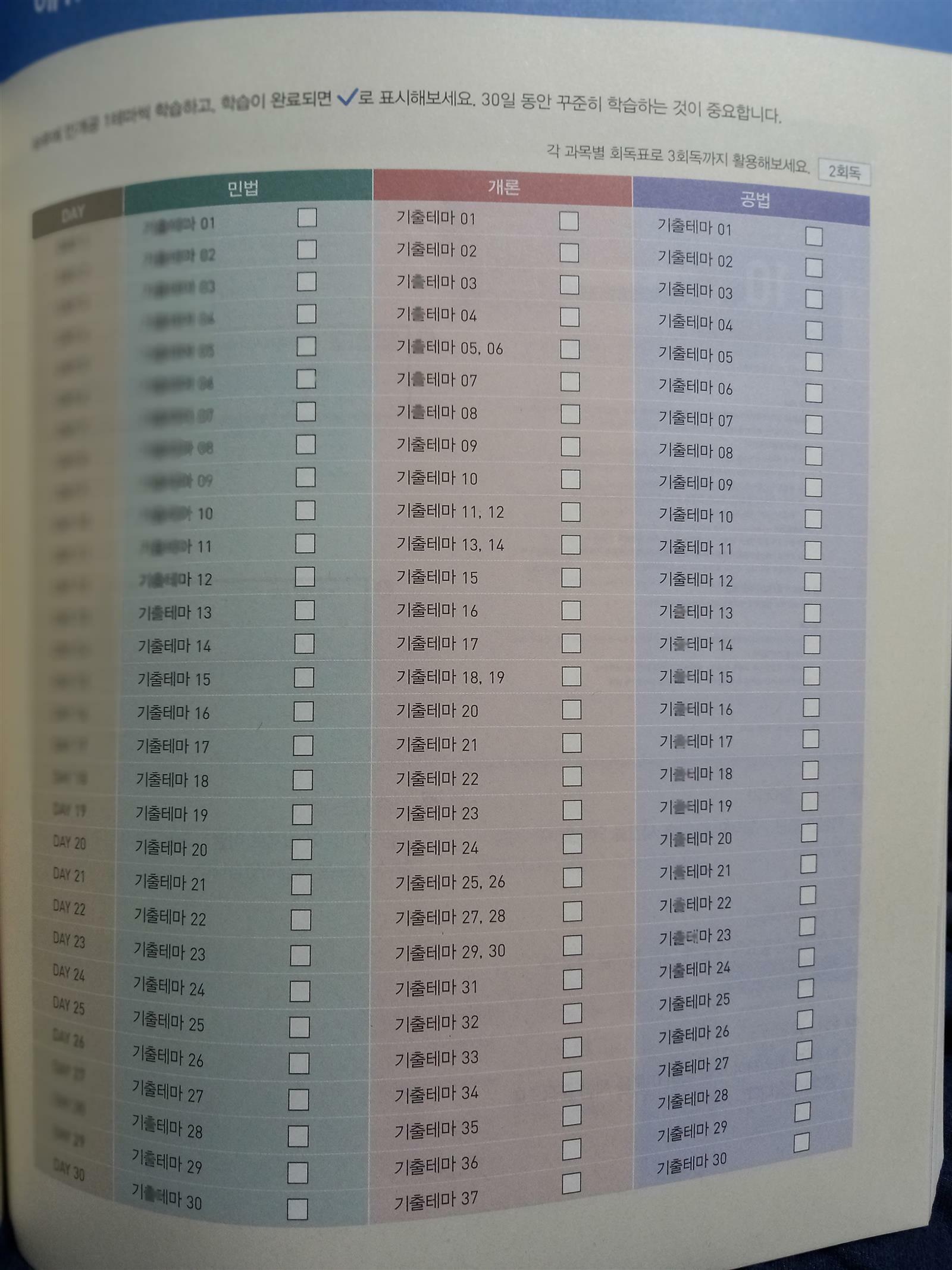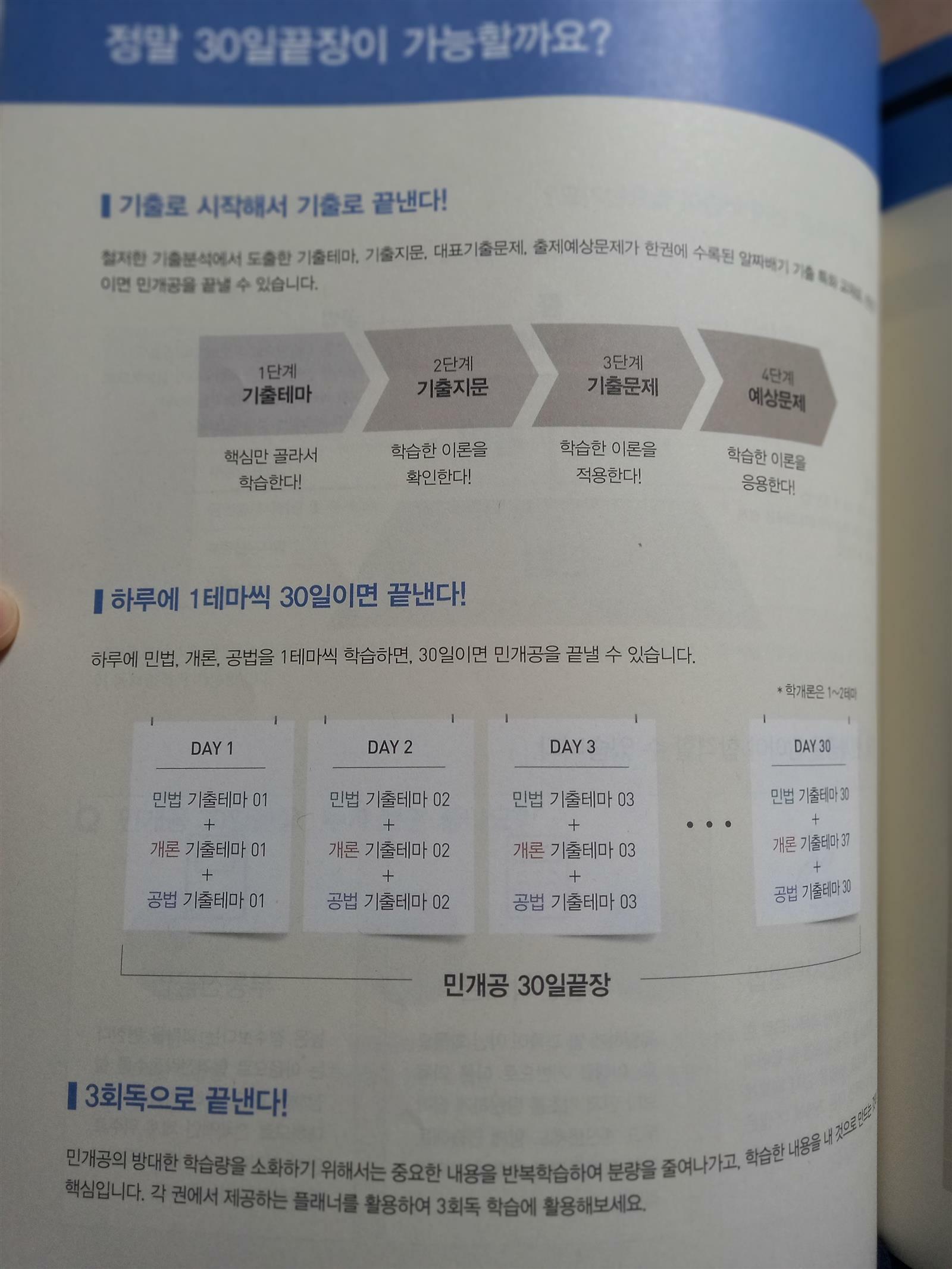 어떻게 계획을 세워야할지 고민인 수험생들을 위해서 30일 플랜으로 하루에 민개공을 한테마씩 학습할수 있도록 플랜이 나와있어요.