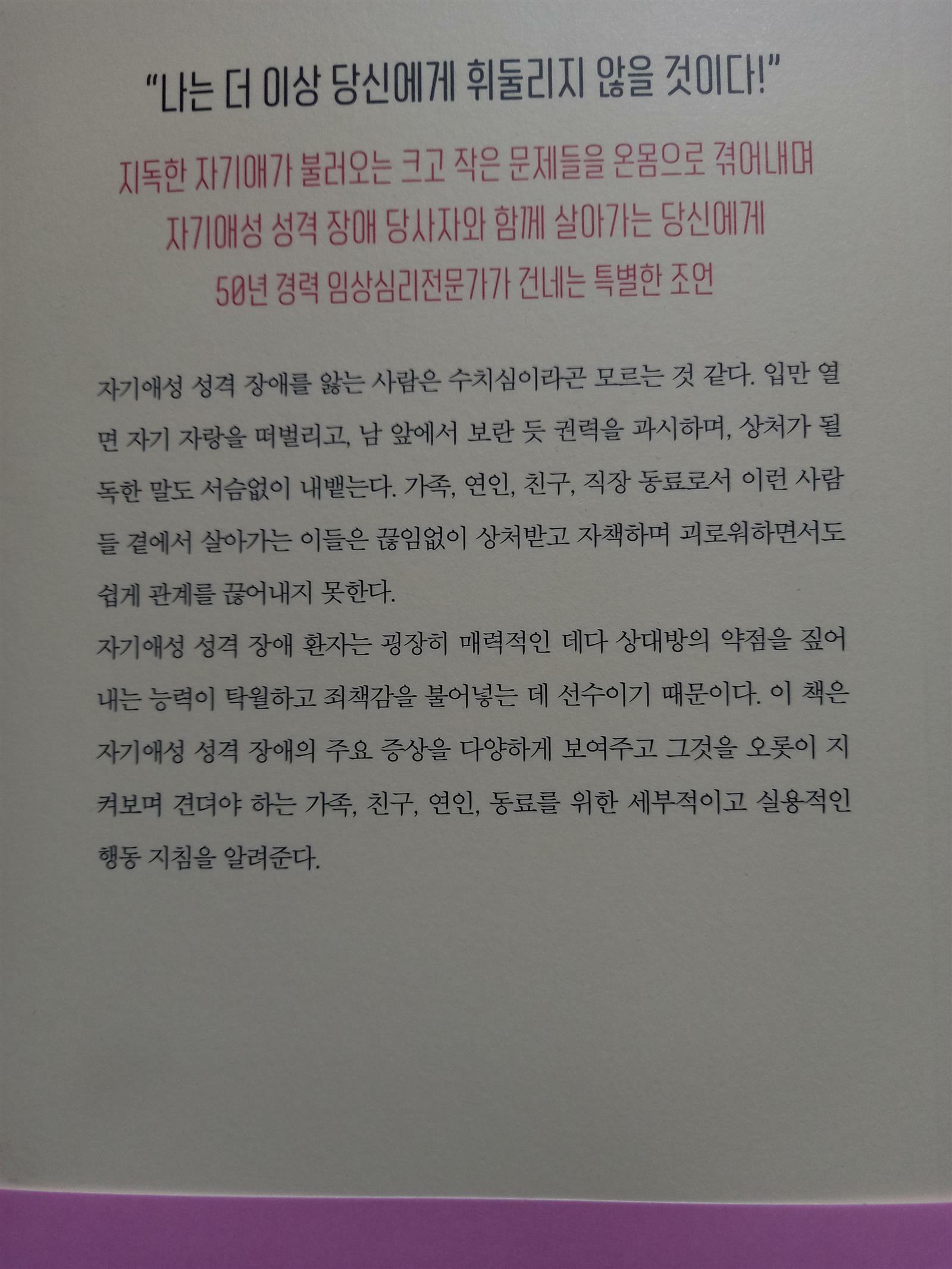 주변의 자기애성 성격장애를 가진 분들에게 도움이 되길 바란다.