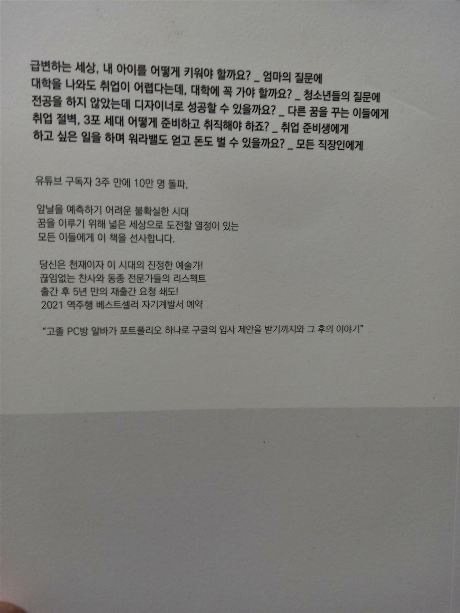 저자는 고졸에 PC방 알바생에서 포트폴리오 하나로 구글 입사제안을 받았다.