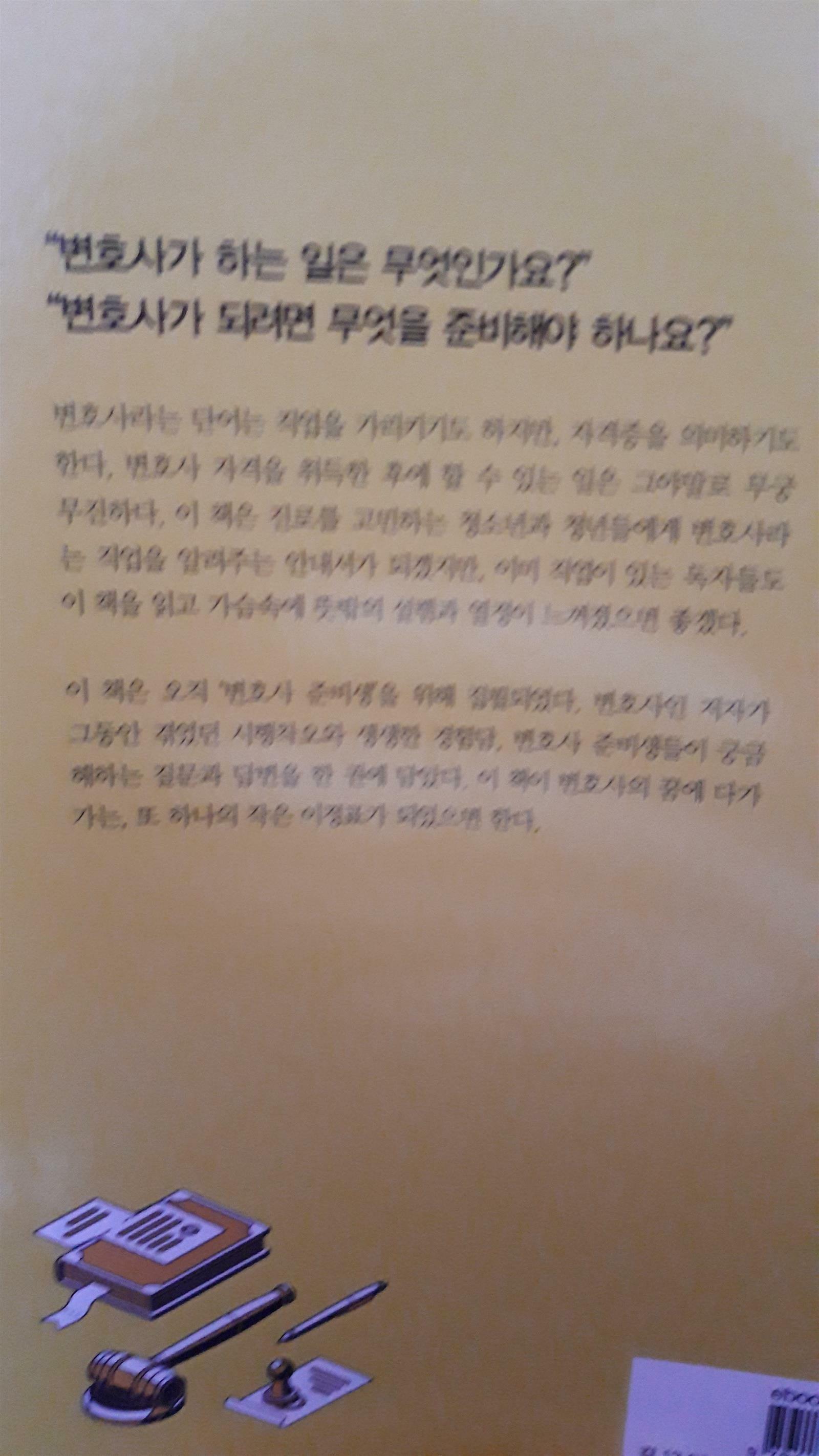 변호사가 되기위한 안내서? 변호사의 궁금증을 사람들을 위해서 알기 쉽게 애기해주는데요 변호사인 작가가 직접 들려주는 스토리 가이드북! 1. 변호사, 매력 있는 직업에 관한 이야기 2. 변호사의 생활은? 3. 변호사로 살아가는 이야기 4. 변호사가 되기 위한 가이드 어려운 법공부를 사고 사법시험에 합격해서 연수원 생활을 마치고, 법원에서 당당하게 변호하는 그 모습은... 내가 생각한 변호사는 드라마속 변호사인데, 실제로도 그럴까? 공부도 엄청 잘해야 할것 같고, 무엇보다 조리있게 이야기를 해야 하는직업 그리고 고소득. -사자가 붙는 직업. 책을 보면 Q&A 형식으로 질문에 대해서 자세하게 내용을 풀어나간다. 아무리 AI 인공지능시대라고 해도 인공지능의 영역이 미치지 못하는 부분이 있으니 미래의 변호사라는 직업의 전망은 맑다. 변호사 역시 남녀의 차이를 극복하지 못한것 같다. 결혼과 임신, 출산을 이유로 차별이 상대적으로 적은 판사와 검사를 선호하는 경향이 있다. 어떤 직업이든지 남녀의 보이지 않은 차이가 있다는 현신이 아쉽다. 책을 읽다보면 사법제도에 대해서 나오면서 사형제도가 나온다. 인권이라고 하지만, 극악무도한 범조자들에게 인권을 존중해야 할까? 피해자들의 인권을 유린한 그들의 인권을 지켜줘야 한다? 이해되지 않는 부분이지만, 아직 우리 국민들의 인식은 사형제도가 필요하다고 생각하고 있다. 변호사 생활이 화려해보이지 만은 않은데 어떻게 스트레스관리를 할까 작가는 108배로 스트레스 관리를 하는데 어떤일이든 스트레스 없는 일이 있을까? 명상이나 108배도 좋치만 나 같은 경우에는 땀에 푹 젖을 정도로 자전거를 탄다. 각자 자신만의 방법으로 관리하면 되겠지. 마지막에 변호사가 되기 위한 시험준비가 책의 하이라이트가 아닐까 싶다. 구체적으로 어떻게 준비 해야하는지 상세하게 나와있다. 변호사라는 직업은 메리트있다. 변호사를 꿈꾸는 청소년 및 모든 사람에게 퀘스천의 답이 담겨있는 변호사해석법으로 꿈을 이루길. 이 책은 리뷰어스클럽에서 제공받아 작성된 리뷰입니다 #변호사해석법#김경희#이담북스#청소년#리뷰어스클럽#서평이벤트
