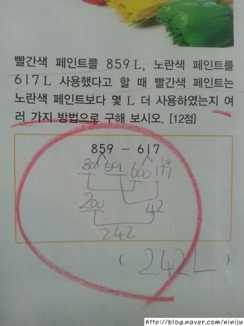원의 계산의 문제는 답 수만 적는것인데