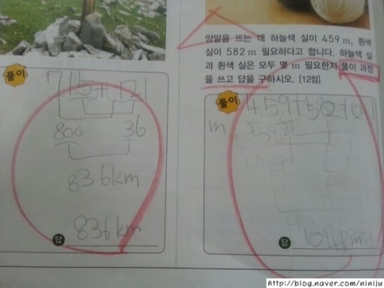 요즘은 이렇게 정확하게 정답을 적는답니다