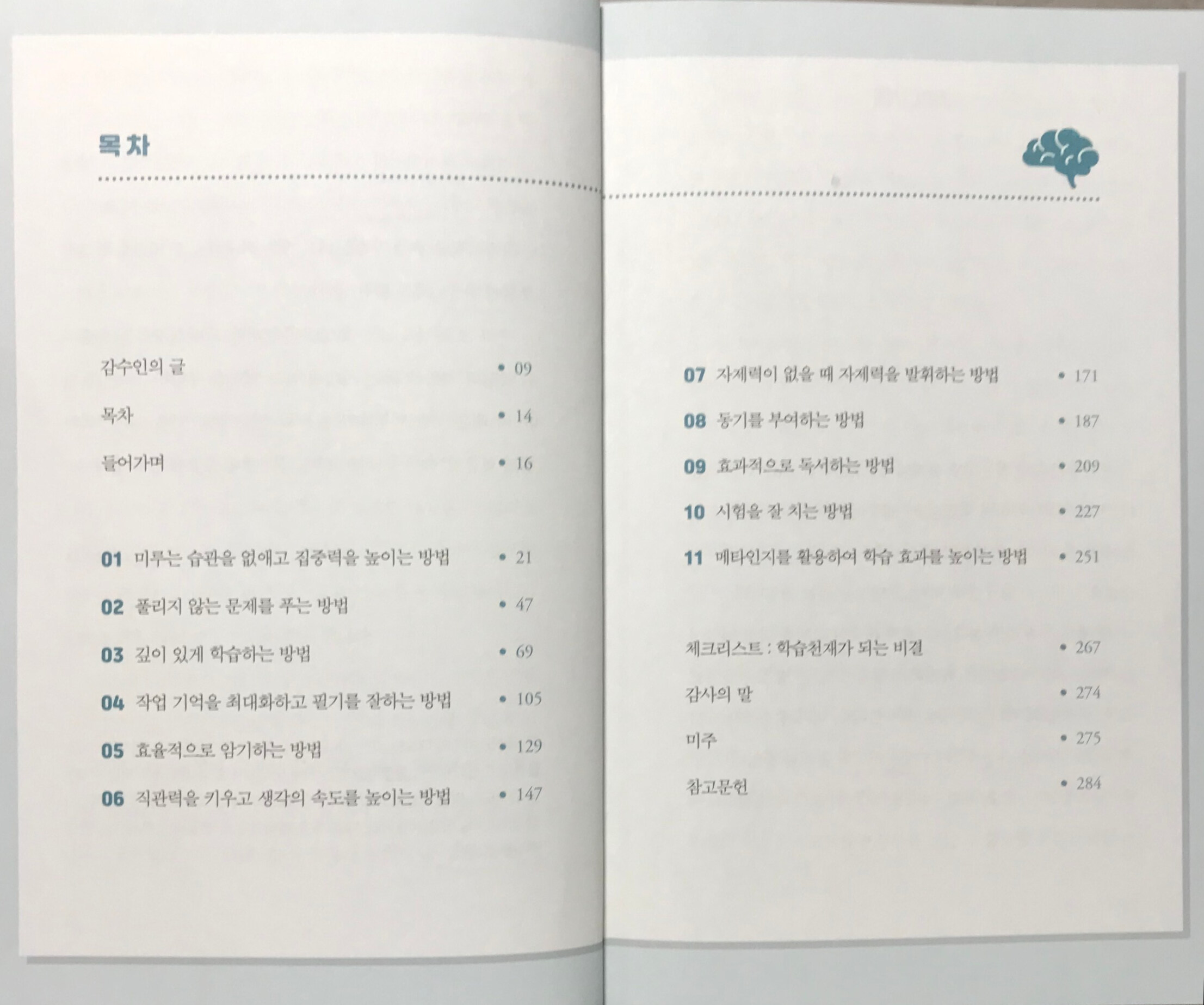 이제는 평생 배워야 하는 시대를 맞아 학습천재가 되는 11가지 공부 비결에 대해 신경과학과 인지 심리학 분야의 연구 결과를 근거로 왜 그렇게 학습하는게 효과적인지 이유를 설명해주고 있다