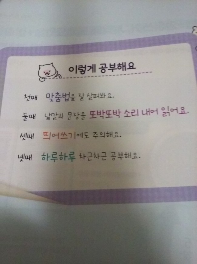 예문으로 배운 내용을 받아쓰기 하며 이해했는지 확인해보고