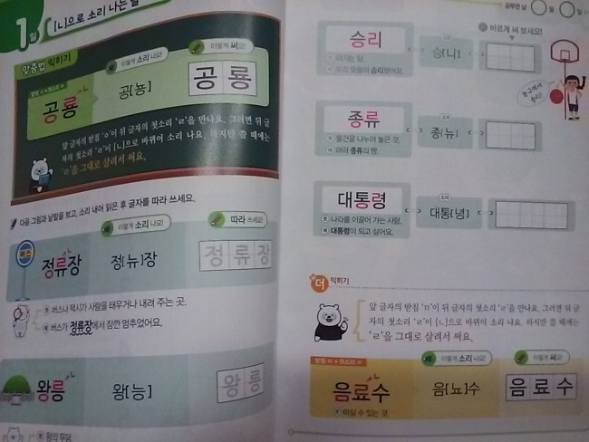 첫날은 ㄴ으로 소리나는 말을 배우고요