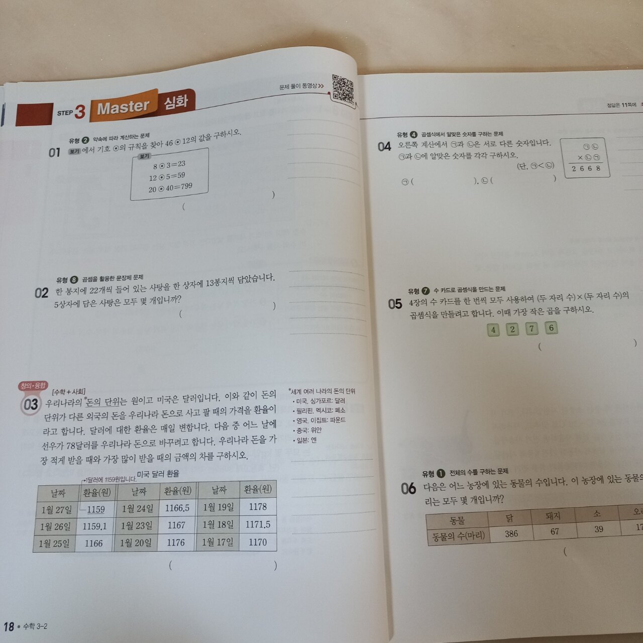 *step2에서 배웠던 8가지의 여러유형이 골고루 섞여있어요 살짝 어렵거나 헤깔리는 문제가 있다면 상단부에 있는 문제풀이 동영상 QR코드를 찍어서 도움 받을 수 있어요