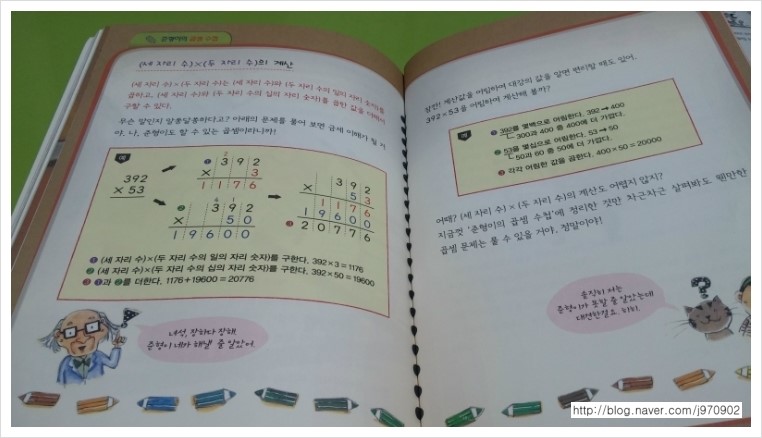 힘들어하는 준형이를 보고는 할아버지가 원숭이도 할수 있는 곱셈비법을 알려주겠다고 하지요.