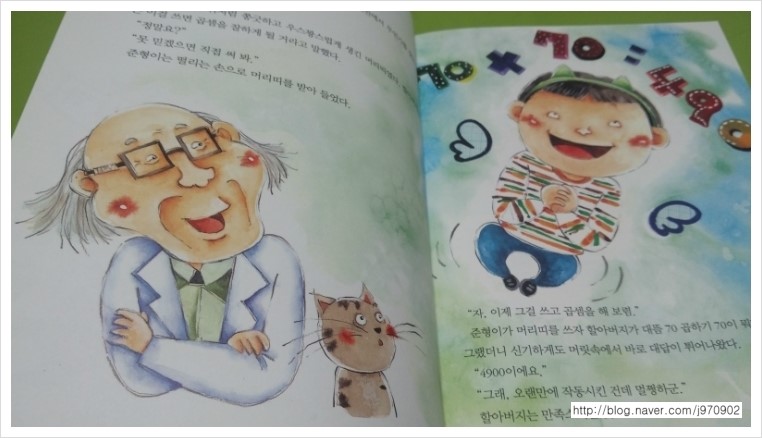 할아버지는 곱셈을 잘 못하는 준형이에게 쓰면 곱셈을 잘할수 있게 되는 머리띠를 주십니다. 신기한 머리띠를 쓰니까 그 전까지는 몰랐던 곱셈이 바로 바로~답이 나오는게 아니겠어요~