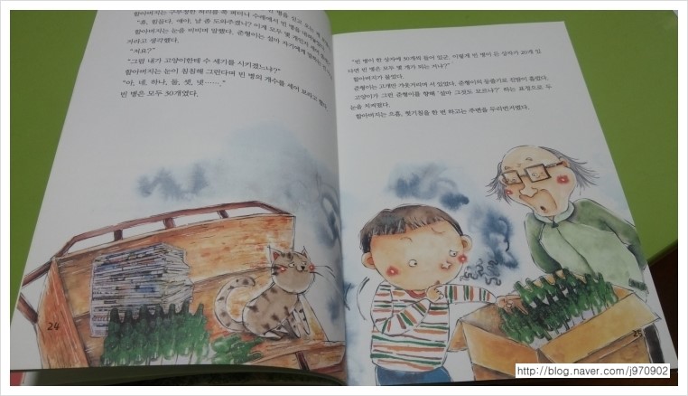 하교길에 수레가득 빈병을 싣고 오는 할아버지를 만나게 됩니다. 빈병을 세어 달라는 부탁을 받고는 참 곤란했겠지요?