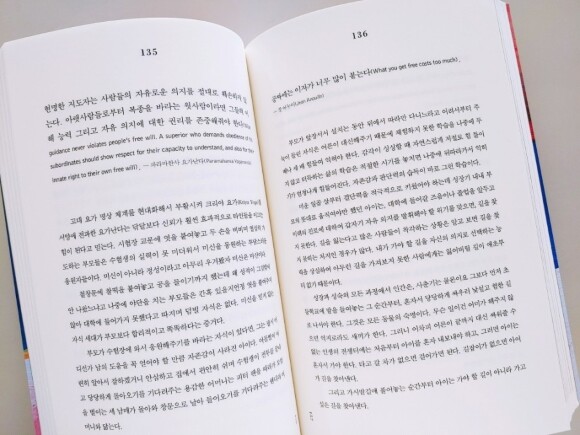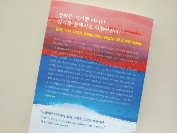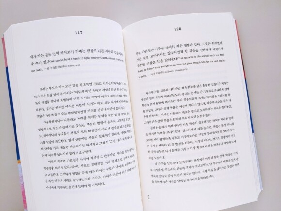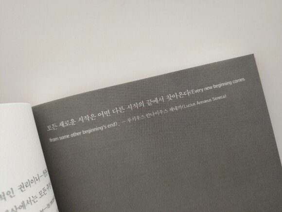 책의 맨 윗부분은 현인들의 글이 있습니다. 그리고 그 아래로는 작가분의 말이 이어집니다. 옛 현인들의 말이 낯설어서 어색함에 뜻을 알듯말듯한 문장들도 있습니다. 하지만 아래 작가분의 이야기를 읽어내려가면서 이해가 됩니다. 그리고 인생에 대해서 한 번 곱씹어보게 됩니다.