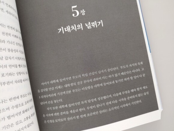아이가 대학에 들어가면 부모의 학업 간섭이 갑자기 중단된다. 부모가 자식의 숙제를 검사할 만큼 이제는 대학생의 전공 분야에 대하여 아는 바가 없기 때문만은 아니다. 고 3 뒤치다꺼리에 기진맥진한 부모는 아들딸을 대학에 들여보내 놓기만 하면 할 일이 다 끝났다며 손을 놓는다. 자식 또한 대학에 들어가면 목적 달성에 성공했다며, 다음에 무엇을 해야 할지 새로운 시작에 대한 준비를 게을리한다. 무엇이 끝나기 전에 다음 시작을 준비하지 않는 습성은 인생을 토막토막 잘라서 한 번에 조금씩만 살려는 소극적인 시각에서 기인한다.