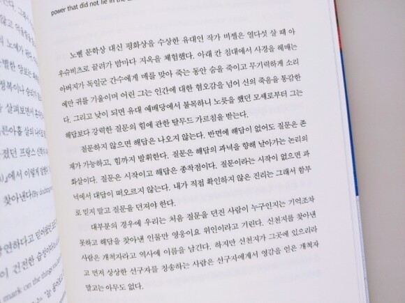 처음에 이 문장을 읽고는 무슨뜻일까. 답이 없는 힘. 질문에 꼭 답이 있지는 않다. 하지만 질문은 힘이 있다. 이런저런 생각을 하면서 작가분의 이야기를 읽어내려갑니다.