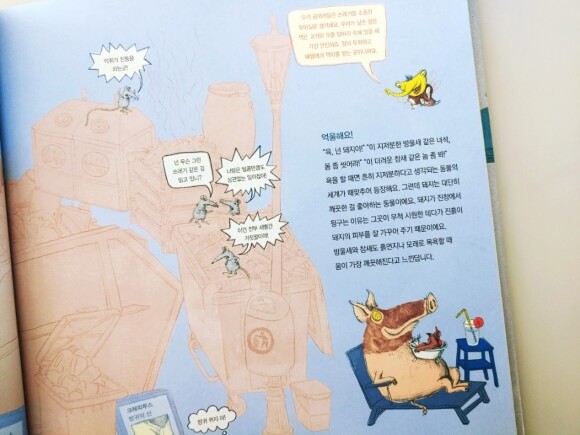 이 책은 그림책형태로 되어있지만, 담고 있는 내용들은 생각보다 깊이 있는 내용들로 되어 있고 또 한편으로는 아이들이 흥미를 가지고 볼 수 있도록 매력적인 일러스트들로 구성되어져 있습니다. 초등학생아이라면 킥킥거리면서 볼 수 있는 그런 일러스트들입니다. 그리고 세세하게 들여다볼수록 더 많은 부분들이 보이는 책이라서 공들여서 봐도 좋을 책입니다.