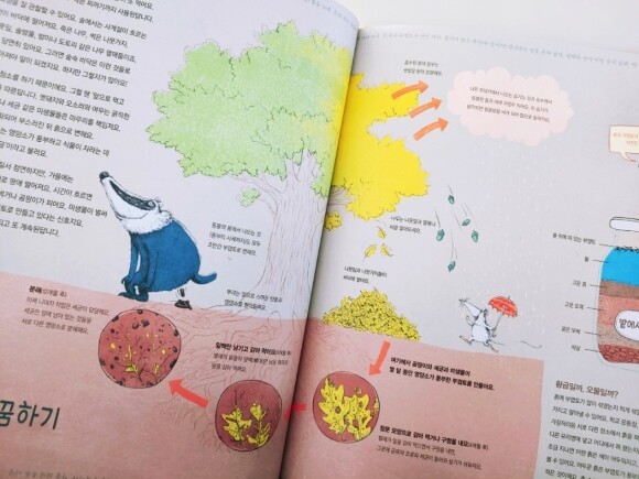 일단 아이입장에서 이 책을 받아들자마자 눈으로 훑기 바쁩니다. 시각적인 부분이 강한 아이라서 눈으로 먼저 전체적으로 본 다음에 본책내용을 보기 시작하는 아이여서 더욱 더 잘 맞는 책입니다.