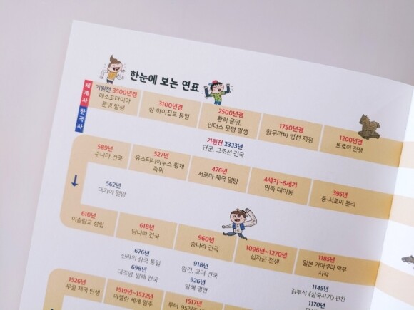 한눈에 보는 연표는 세계사와 한국사를 같이 볼 수 있게 되어있습니다. 그리고 간결하게 나와져 있기에 전체적인 역사의 흐름을 보기에 좋습니다.