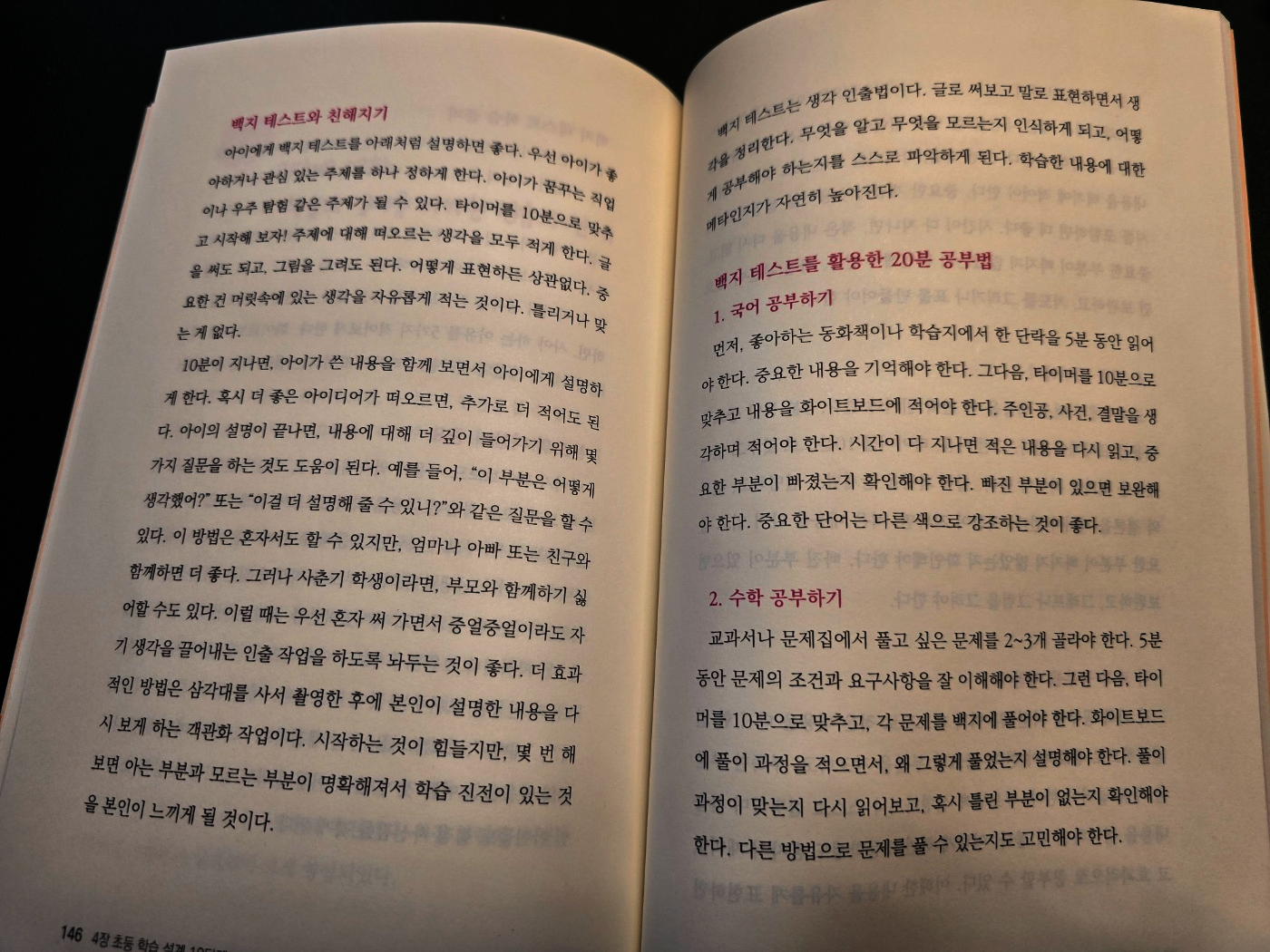 요즘 유행하는 백지테스트와 친해지면서 학습에 대한 내용을 인출하는 방법과 백지테스트를 활용한 과목별 공부법도 눈길이 간다. 아이와 함께 학습한 내용에 대한 메타인지를 높이려면 백지테스트만한게 없을듯하니 읽은대로 활용해봐야겠다.