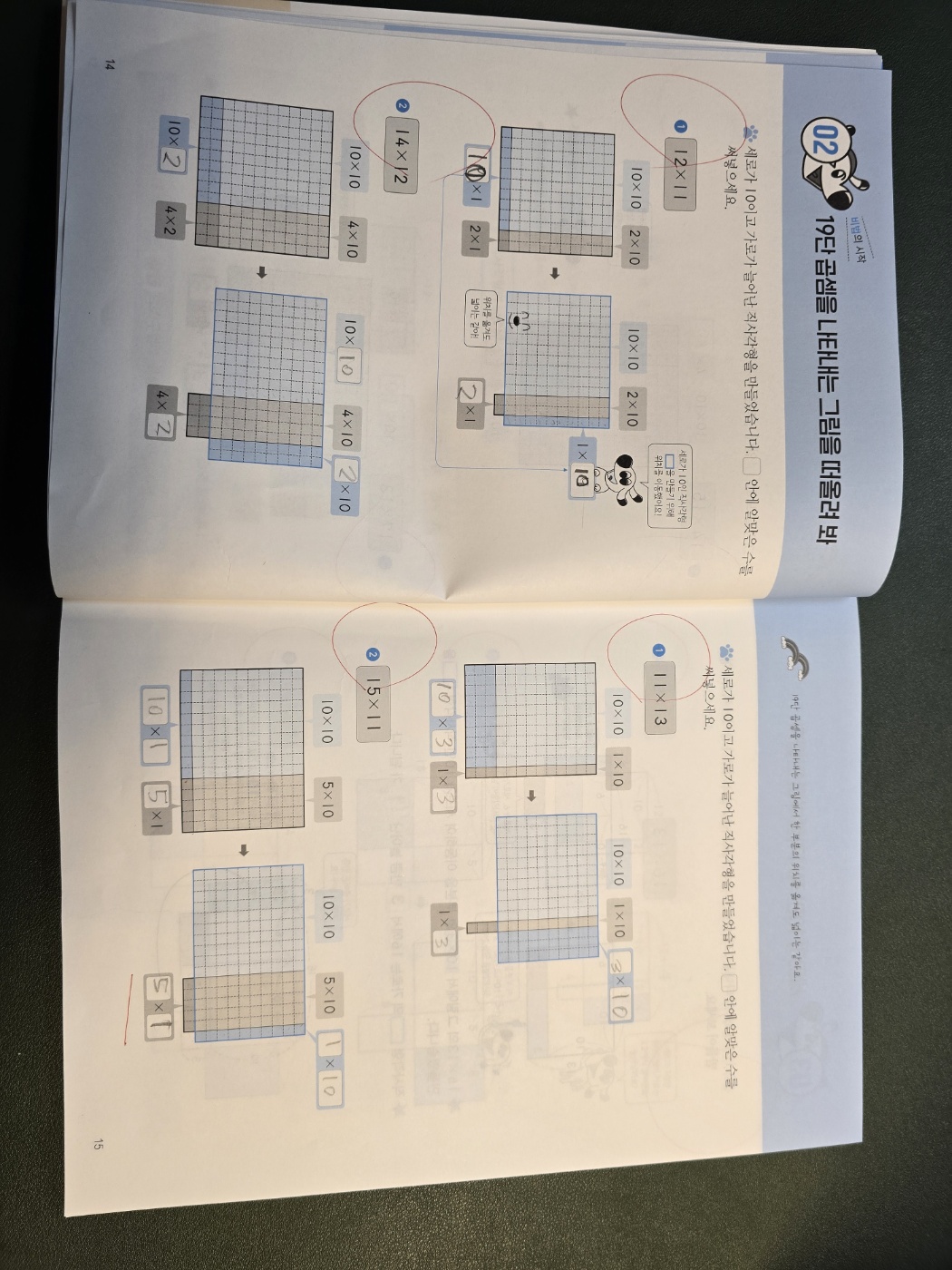 1단계 ) 그림을 보면서 19단 곱셈법의 원리를 쉽게 배우고 원리 그림을 떠올릴수 있또록 직접 보면서 연습할수 있어여. 2단계 )아울러 앞서 배운 비법을 써먹어 19단 곱셈을 간단한 두개의 곱의 합으로 바꾸어 푸는 연습을 하면서
