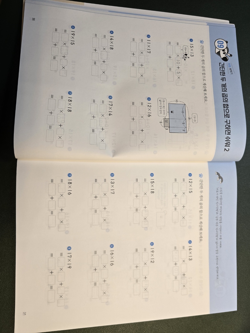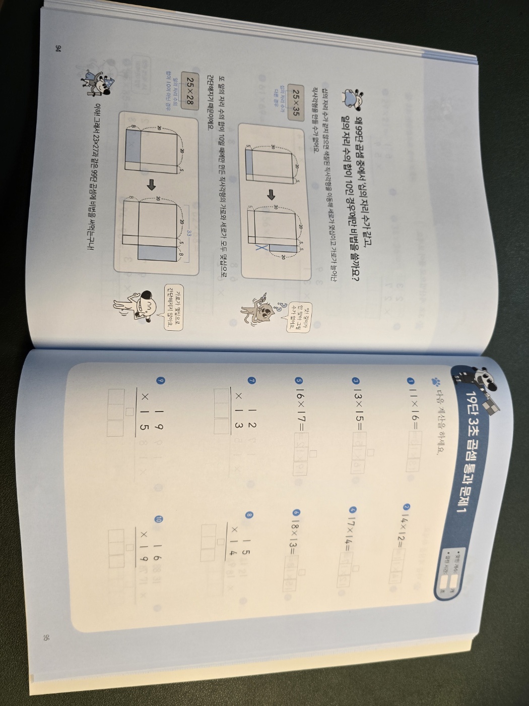 계산과정을 정확하게 쓰면서 단계별로 집중훈련하면서 19단 곱셈을 익혀보았어여..