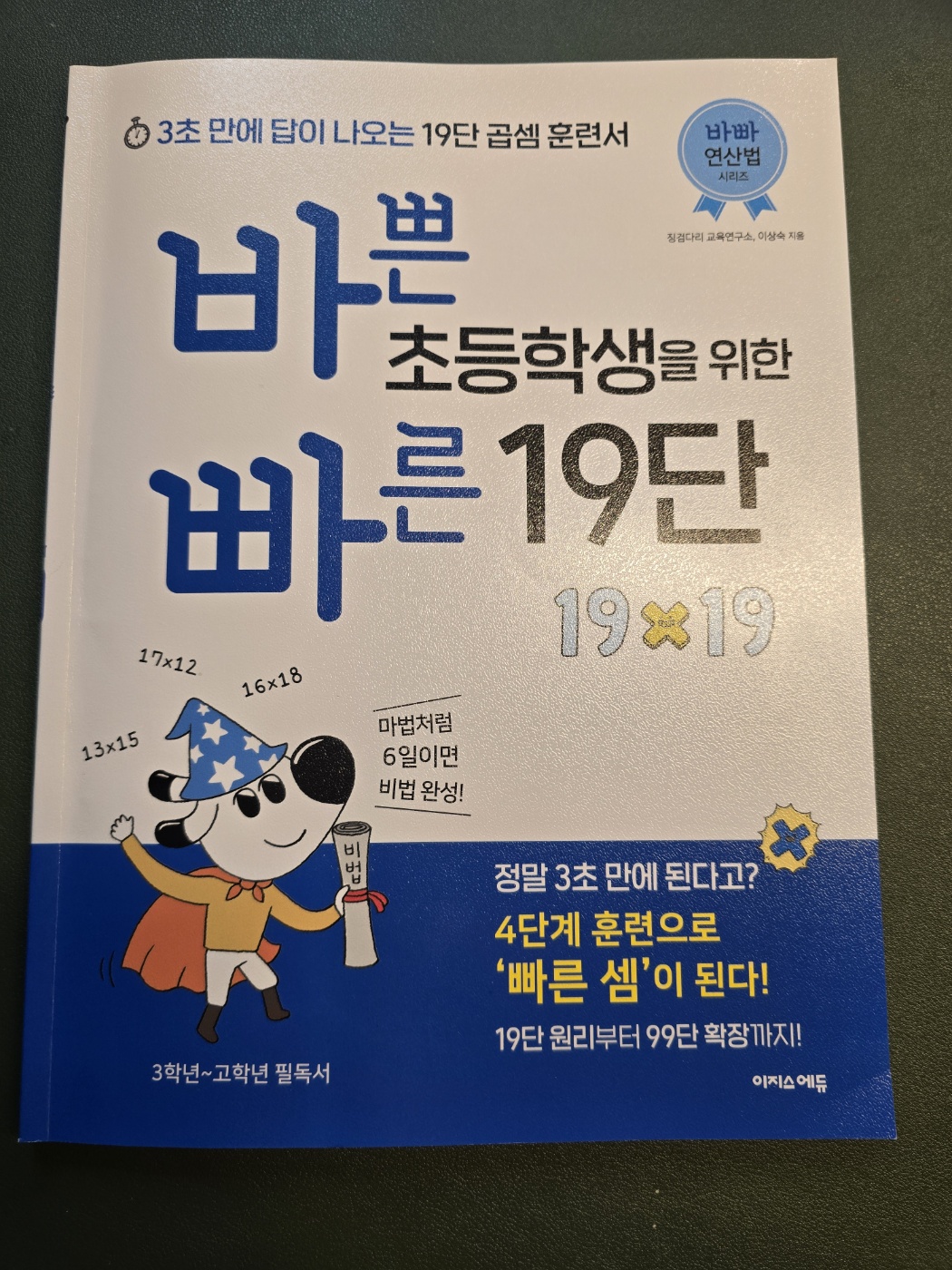 이지스에듀에서 출간한 바쁜 초등학생을 위한 빠른 19단으로 마법같은 19단 곱셈을 파해쳐보기로 했어여.
